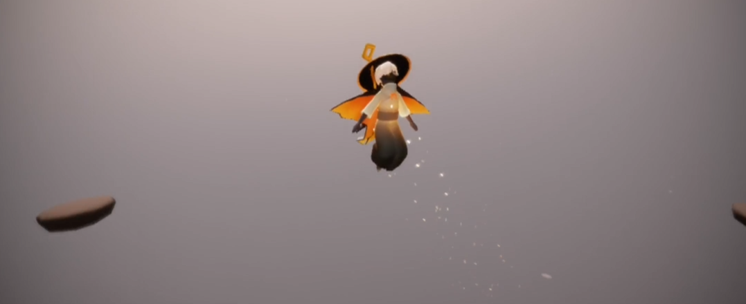 从最后一个跳板冲顶,是整场飞行最难的部分。用尽全力笔直向上飞行,你会发现即使耗尽了所有能量,离终点似乎仍有一线之隔。这时需要掌握一个关键操作,在能量告罄的瞬间靠近墙壁,利用墙体向上进行一次灵巧的蹬墙跳跃,正是这最后一跃,才能将你送上至高之点。当脚下是万千云海,举蜡烛先祖的身影便在平台中央静候着你最后的互动——点亮周围全部的八根蜡烛。
